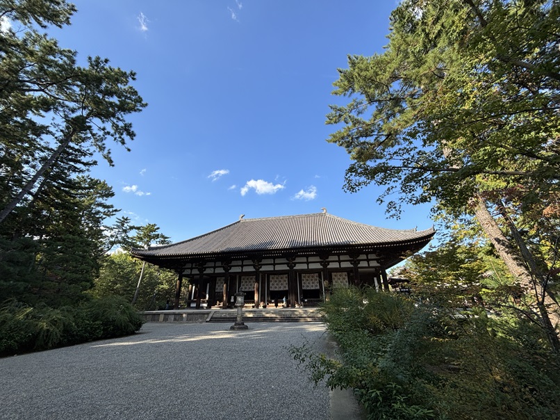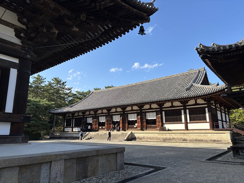 昨日は午後のお休みで先に用事を済ませた後、ただちに唐招提寺を訪ねました。4ヶ月ぶりになりました。6月の時は曇り空だったので、昨日は晴天の下、また新しい感じの雰囲気がありました。訪れている人は多くなく、寂しいという人数ではありませんが、ゆっくり過ごすことができました。日本人が多いです。中国人も1人、2人ぐらいの少人数の人がほとんどで、中国の教科書に載っているほかはこんな西ノ京の唐招提寺に足を向けるような人ですから、静かにこの環境を味わっているようでした。東大寺の雑踏とは違って気持ちのいい時間が流れています。