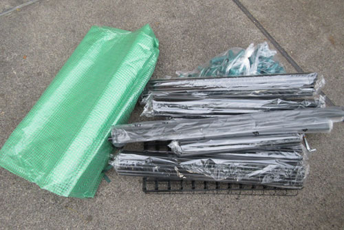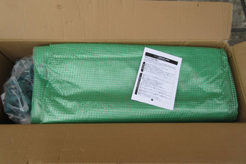 かなり前に新品を購入してありました。新たに購入したのは今までよりも大きい1坪タイプで、ちょっとわけあって今まで敬遠してきた緑色の繊維入りビニルの製品を購入したんです。 |