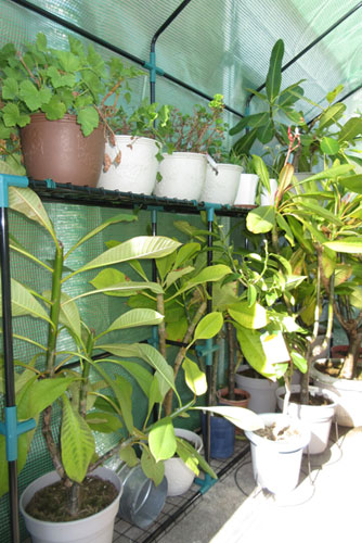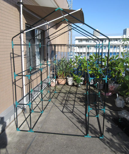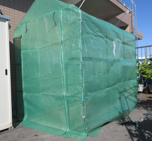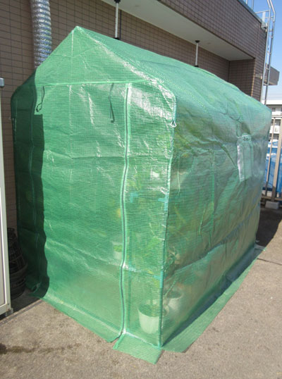 ルーフバルコニーのビニルハウスは浴室からの排気のおかげで、何とか温度を維持しています。 |