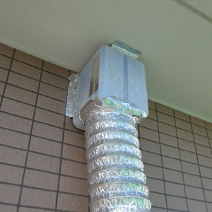 そして浴室暖房乾燥機の排気口にアルミフレキシブルダクトを接続。これは今までのものの使い回しです。 |