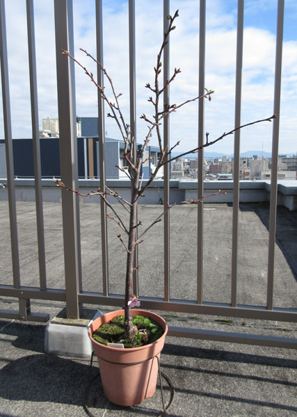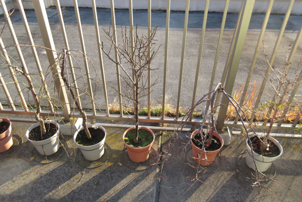 梅と桜の鉢木を日当たりのいい南面ベランダに移動させました。 |
