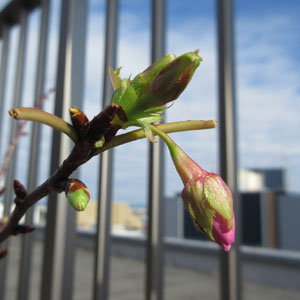こちらは「吉野しだれ桜」、まだつぼみが固いです。 |