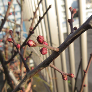 「立梅(紅梅)」はつぼみが赤くなってきました。 |
