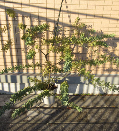 しかし、こんなふうに茎部分が落葉し、徒長してしまっている鉢も。 |