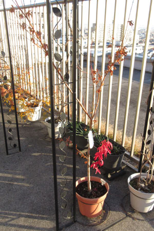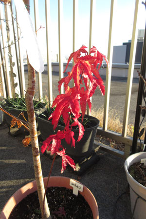 今年の新芽が見事に紅葉しました。いつまで枯れずにいれくれるのでしょうか。 |