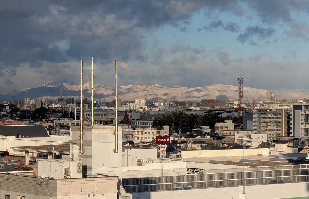 今日は寒い1日でした。名古屋の最低気温は1.7度、最高気温も8.2度までしか上がらず、よく言う「真冬並みの寒さ」でした。ただ、今日は風がなかったので体感温度は意外に低くなかったです。写真はわが家から見た関ヶ原方面です。左端の山が伊吹山で写真右側の奥伊吹方面が薄っすら白くなっていました。名古屋も夜のうちに雪が降ったようですが、積もるまではいかなかったようです。