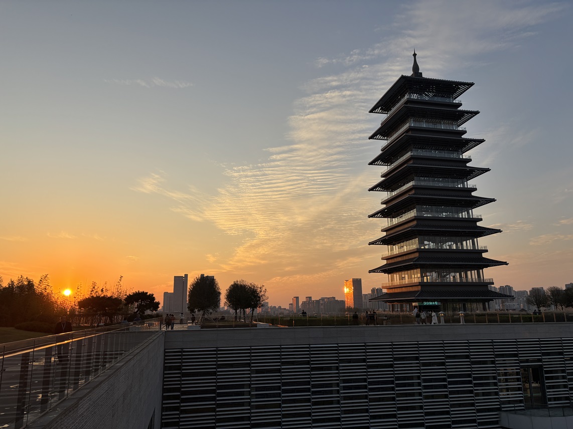 大運河博物館の屋上からです。中国の空気がきれいになったのでこのような景色を楽しめるようになりました。20年前は見ることがなかったです。博物館と同時に建てられた塔がありまして、内部はレストランやセミナールームになっていました。