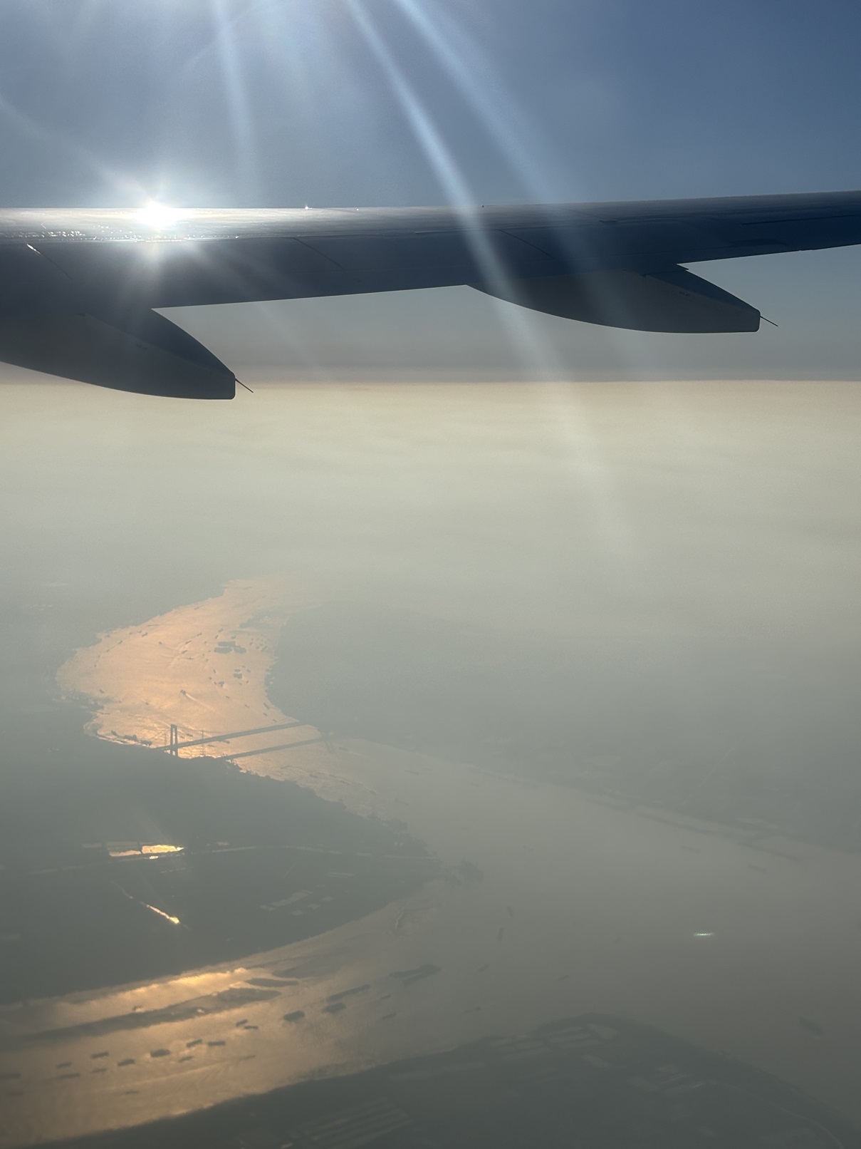 上海の真上を飛びました。今、どうでしょう、東アジア最大の都市でしょうか。こんなふうに眺めたのは初めてでした。