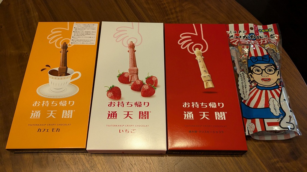今回姫路では会社用のおみやげと自宅用の「もなか」、新大阪駅構内で家内がいろいろ買ってきましたが、その中でわざわざ買いに行ったのがこの「お持ち帰り通天閣」なんです。モロゾフ製造のチョコレートでなかなか味もいいです。東京駅と新大阪駅ではあちこちにおみやげ売り場があって、その中で派遣された製品販売会社の売り子さんが商品を売っている姿がすごいと思います。名古屋駅では見かけない光景です。観光需要の差ですね。