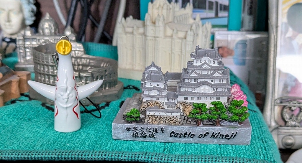 昨日買ってきたおみやげを先ほど品評し合いました。姫路城のミニチュアと太陽の塔のストラップはそのままTVボードの中に飾りました。久しぶりにミニチュアを買いました。もちろん国内では初です。私の若いころはペナントが流行りましてね。自分の部屋の天井に所狭しと張り付けたものです。ペナント文化は知らないうちに廃れました。