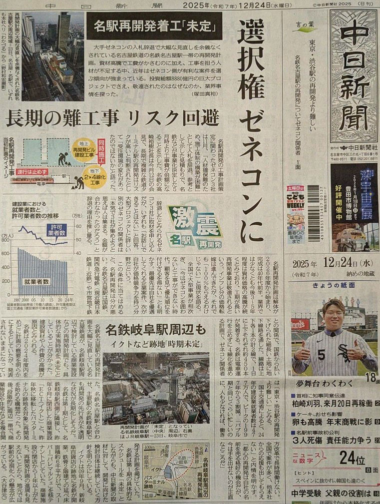 2025年の名古屋圏では、名鉄名古屋駅再開発が未定となって実質頓挫した以外には大きなインパクトある事案はなかったのかなと思います。エスパシオ・ナゴヤキャッスルが開業して1泊20万円の強気な価格を出して市場を開拓していることは目立ちました。次はコンラッド名古屋へつながって超高級ホテル市場がどうなっていくか注目点になります。