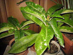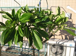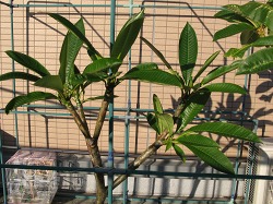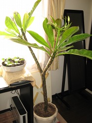 どんどん大きくなるプルメリア。もう今年の冬は室内での越冬は困難かも・・・。 |