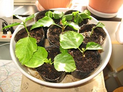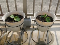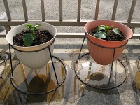 こちらはハイビスカスの挿し木。5ポットほどは成長しているような気がします。これらは引き続き室内に置いておきます。 |