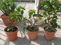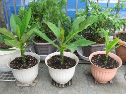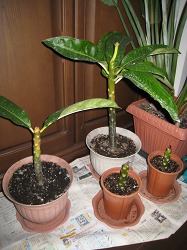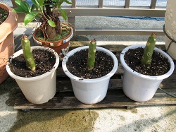 4鉢作ったプルメリアの挿し木。今のところ順調に越冬しています。 |