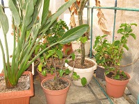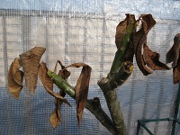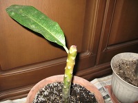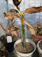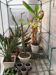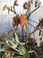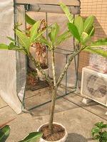 ビニルハウスで越冬させたほうのプルメリア。結局今年の夏は花が咲くことはありませんでした。 |