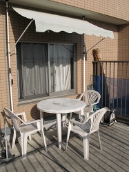 私のパソコン部屋の窓の外側。ガーデニングセットも用意しました。 |