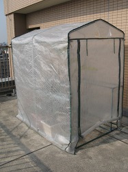ビニルハウス内に収納しました。しかし、日中の温度上昇を防ぐため、入口は開放しておこうと思います。 |