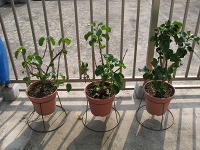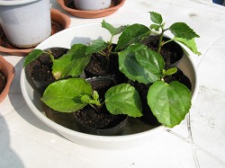 こちらはハイビスカスの挿し木。葉のカタチからすると、みんなバルカンのようです。 |