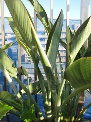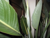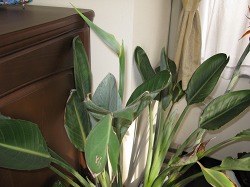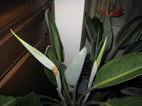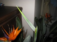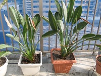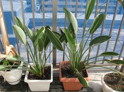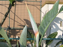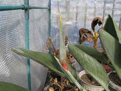 ゴクラクチョウカはずい分大きくなりました。すでに次のくちばしがあるので、ビニルハウス内で咲くかもしれません。 |