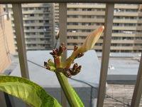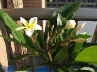 そして1つ目の花が咲きました。これからわが家のバルコニーは、プルメリアのいい香りで包まれます。 |