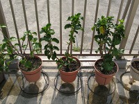 4月に入ったところで、室内の鉢木たちを屋外に出す決心をしました。 |