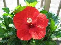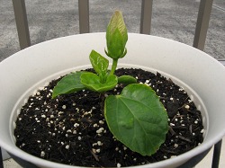 挿し穂で増やした「ハイビスカス」。その後も元気に育っています。 |