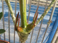 こうして枝の先端にはエイリアンのような葉が出てきています。 |