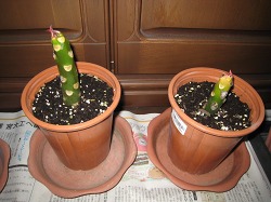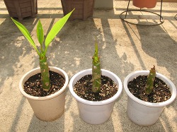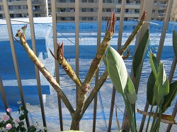 こちらは「プルメリア」です。一見丸坊主ですが、ちゃんと新芽は出ています。 |