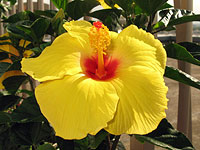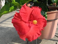連日35度前後の高温で、すでにバテ気味のハイビスカス。 |