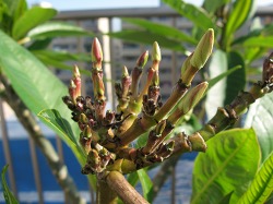 そしてプルメリア。すでにいくつかのつぼみがあります。 |