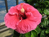 そしてこれは新たしい品種でしょうかね。色はハワイのハイビスカスにそっくりです。 |