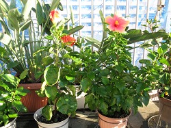 ハイビスカスたちも今年の冬はビニルハウスで越冬させることにします。 |