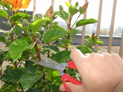 すべてのハイビスカスの鉢木を思い切って刈り戻しました。 |