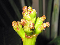 プルメリアの花の成長をご報告します。これが正月過ぎの状態。 |
