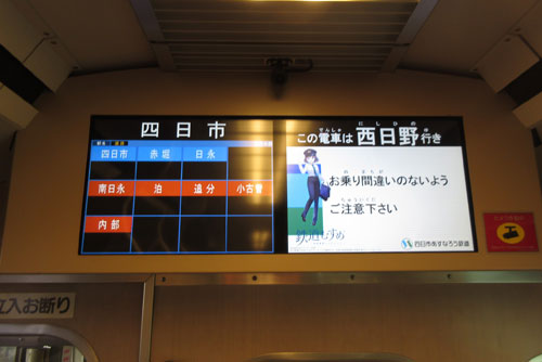 ![]() 午前10時43分、「あすなろう四日市」出発。最初の停車駅は「赤堀」。 |