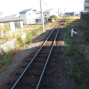 ![]() そしてホームの先には軌間762ミリのナローゲージが伸びています。 |