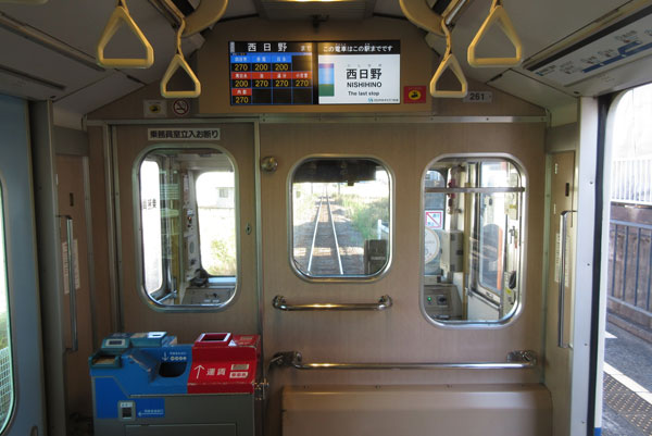 運賃は初乗りが200円でそれ以上が270円。 西日野までは片道270円。 |