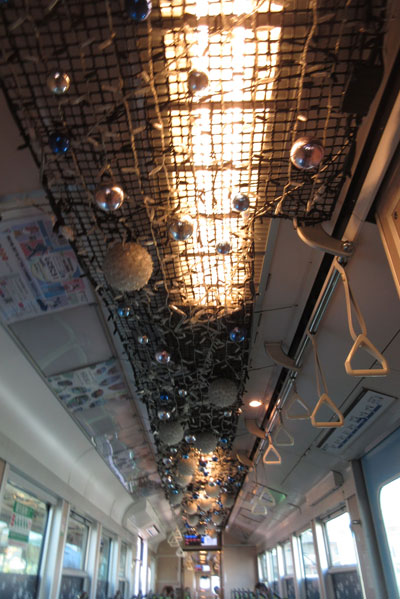 列車は3両編成で中間車両には天井に装飾がありました。 |