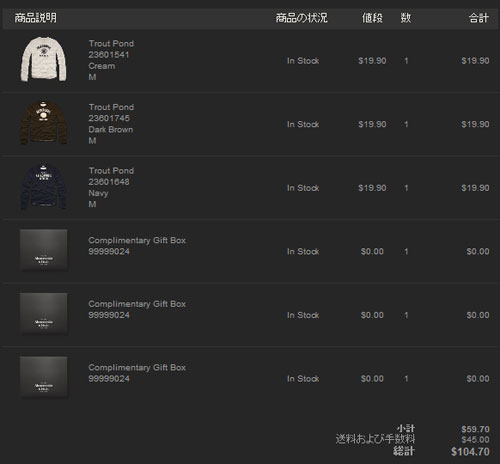 いつもの要領で注文、今回は無料のギフトBOXも3個注文しました。 |