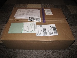 今回のダンボール箱はアバクロのロゴが入っておらず、フェデックスの箱のようでした。 |