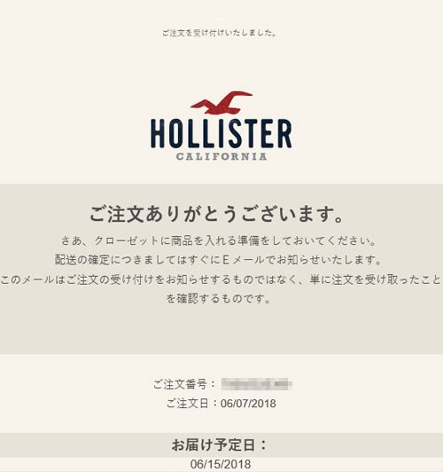 注文してから2日後に発送案内メールが届きました。 |