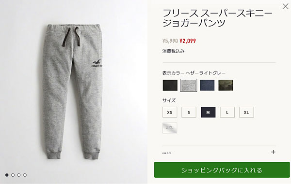 こちらはライトヘザーグレーのジョガーパンツ。 |