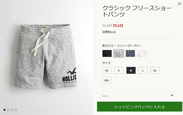 ライトヘザーグレーのショートパンツから。 |