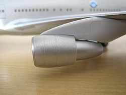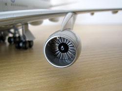 GEとP&Wの形状は酷似していますが、P&Wのほうがエンジンナセルが短く、排気部分がやや丸っこくなっています。しかしスケールモデルだと違いがわかりづらいです。 |
