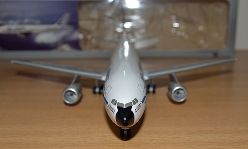 真上から。最近のエアバス機と比べると主翼が短いですね。 |