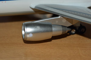 真下から。アンテナ以外も機体にはあちこち突起物が成型されています。 |