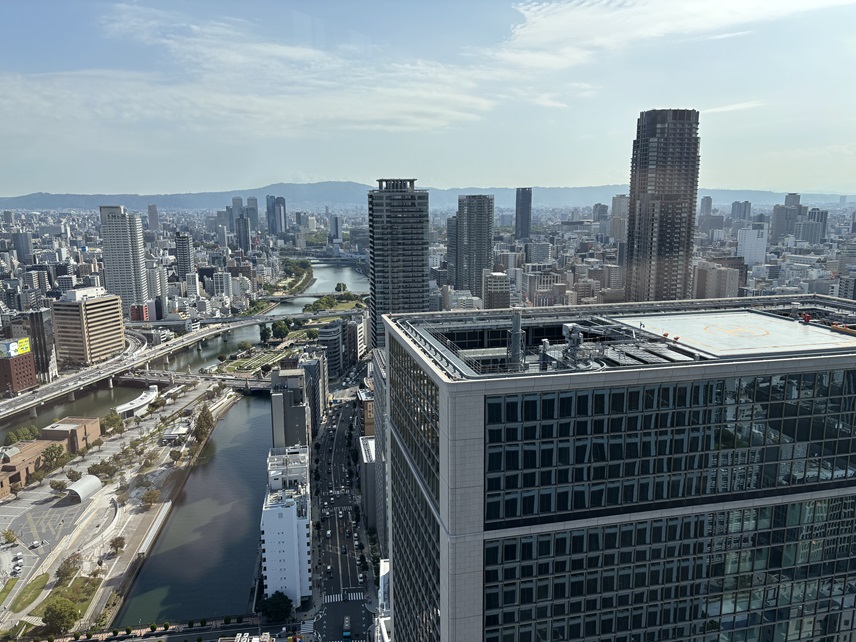 淀屋橋に新しく開業したオフィスビル、淀屋橋ステーションワンには最上階に展望台があって無料で入ることができます。今日は用事を済ませてからお昼前に来てみました。高さは中日ビルとだいたい同じくらいです。ここから見る景色はなかなか新鮮味がありました。