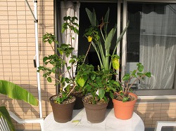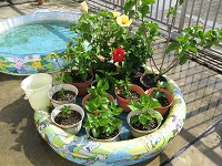 観葉植物たちですが、去年の反省から、ちょっと水量を多くすることにしました。 |