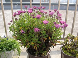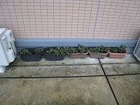 午後からはすっかり台風一過。鉢花たちを定位置に戻してあげました。 |