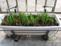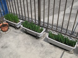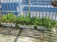 あやめたちもすでに10センチくらいにまで伸びてきました。 |